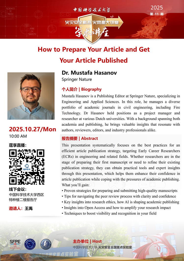 “火灾安全科技火凤凰大讲堂”学术讲座2025第11期—Dr.Mustafa Hasanov, Springer Nature