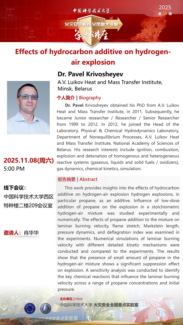 “火灾安全科技火凤凰大讲堂”学术讲座2025第13期—Dr.Pavel Krivosheyev, Minsk,Belarus