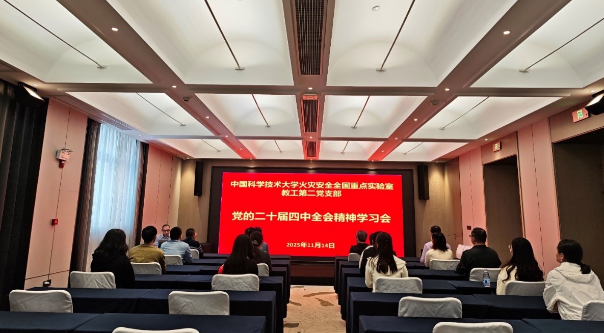 1114日,中共火灾安全全国重点实验室热安全技术国家地方联合工程中心教工第二联合支部(简称“实验室教工第二党支部”)召开集中学习会,专题学习党的二十届四中全会精神,并深入学习学校2025年第二次集中大课授课内容。会议由支部书记肖华华同志主持,实验室党委书记、副主任朱霁平按照党员领导干部双重组织生活制度要求以普通党员身份参加学习交流。