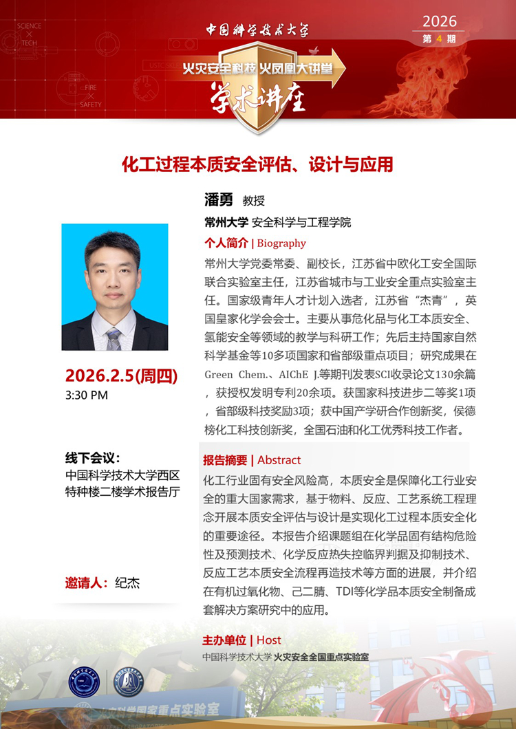 “火灾安全科技火凤凰大讲堂”学术讲座2026第4期—常州大学潘勇教授