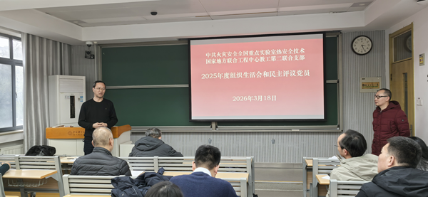 3月18日下午,中共火灾安全全国重点实验室热安全技术国家地方联合工程中心教工第二联合支部(简称“教工第二党支部”)召开全体党员大会,专题学习习近平总书记关于树立和践行正确政绩观的重要论述,并召开2025年度组织生活会和民主评议党员会议。会议由支部书记肖华华同志主持,实验室党委书记、副主任朱霁平按照党员领导干部双重组织生活制度要求以普通党员身份参加学习交流,实验室党委联系教工第二党支部的党委委员宋卫国作点评发言。